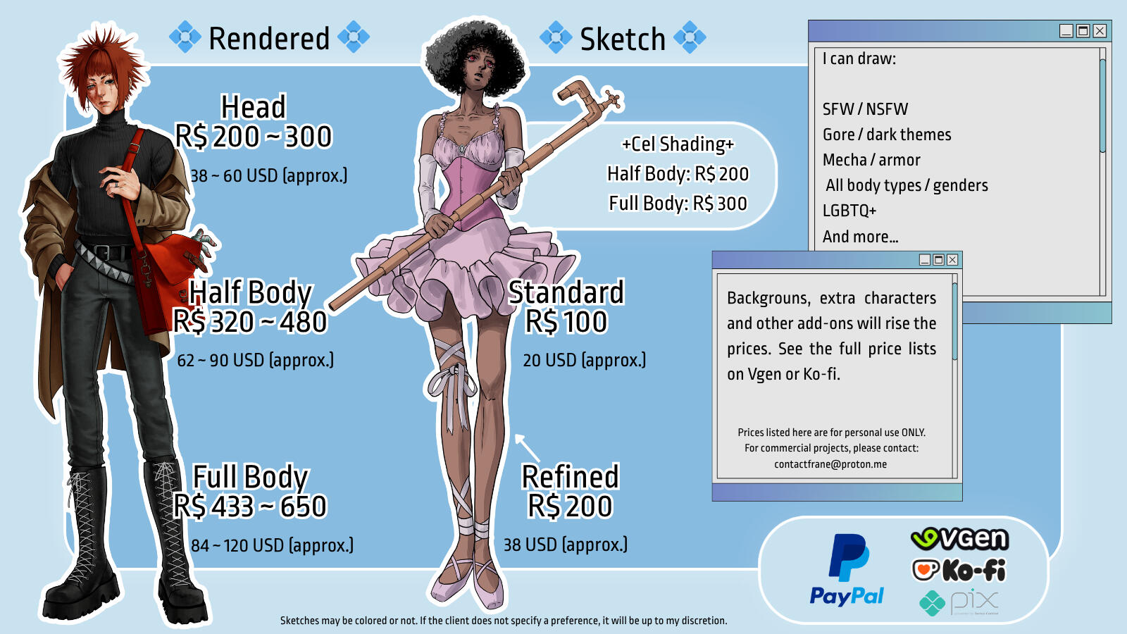 • The remaining amount must be paid before the delivery of the final artwork.2. No Sketch Before Payment• I do not provide sample sketches or previews before the commission begins.